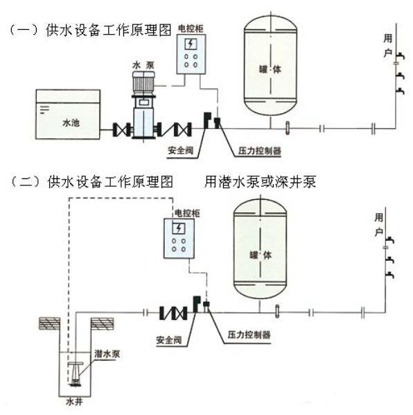 (4)定壓補水裝置設備采用系統靜壓作為膨脹水箱內的設計初始壓力水頭,采用保證系統內熱水不汽化的壓力作為膨脹水箱內動行終端壓力水頭。