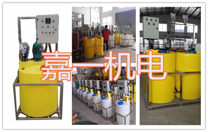全自動加藥裝置采用機電一體化的結構形式,從安裝上可分為固定式和移動式(推車式)。每種形式的加藥裝置均配有攪拌系統、加藥系統和自動控制系統。按需要將定量的藥劑放入攪拌溶液箱內進行攪拌溶解,溶解完畢后再通過計量泵送至投加點的工作過程,加藥量的大小可自由任意調節,以滿足不同加藥量的場所。水處理加藥裝置。在水處理過程中向自來水、廢水、污水中加藥。主要用于有關給排水處理、環保等工藝流程。如自來水廠、賓館、飯店、游泳池、污水處理廠等。