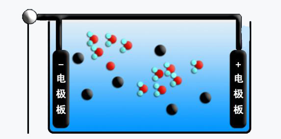 水分子因電解發生斷裂,產生的活性氣體將水體中的細菌等有機物氧化成二氧化碳的形式排出水體,同時,部分活性氧與水體游離性氧結合成氣體排出水體、負極則聚集了大量的活性氫,將水體電解成溶解能力強的小分子還原水。