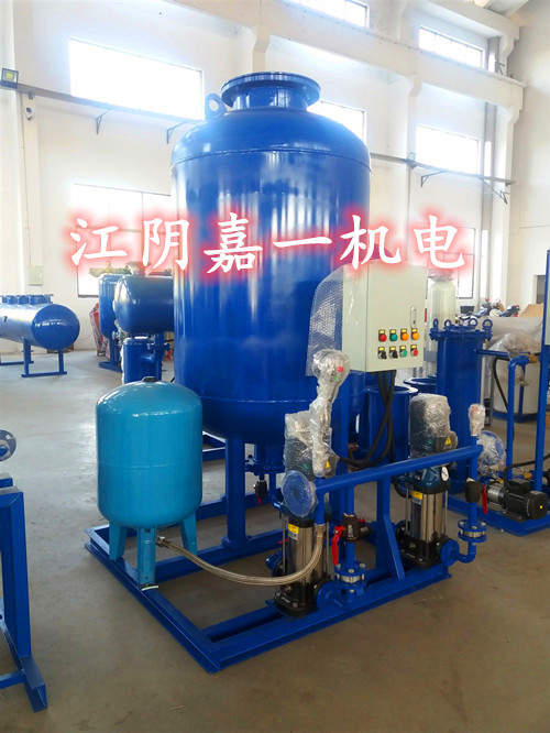 定壓補水裝置設備采用系統靜壓作為膨脹水箱內的設計初始壓力水頭,采用保證系統內熱水不汽化的壓力作為膨脹水箱內動行終端壓力水頭。初始運行時首先啟動補水泵向系統及氣壓罐內的水室中充水,系統充滿后多余的水被擠進膠囊內。因為水的不可壓縮性,隨著水量的不斷增加,水室的體積也不斷的擴大而壓縮氣室,罐內的壓力也不斷的升高。當壓力達到設計壓力時,通過壓力控制器使補水泵關閉。當系統內的水受熱膨脹使系統壓力升高超過設計壓力時,多余的水通過安全閥排至補水箱循環使用,當系統中的水由于泄露或溫度下降而體積縮小,系統壓力降低時,膠囊中的水被不斷壓入管網補充系統的壓降損失,當系統壓力至設計允許的最低壓力時,通過壓力控制器使補水泵重新啟動向管網及氣壓罐內補水,如此周而復始。