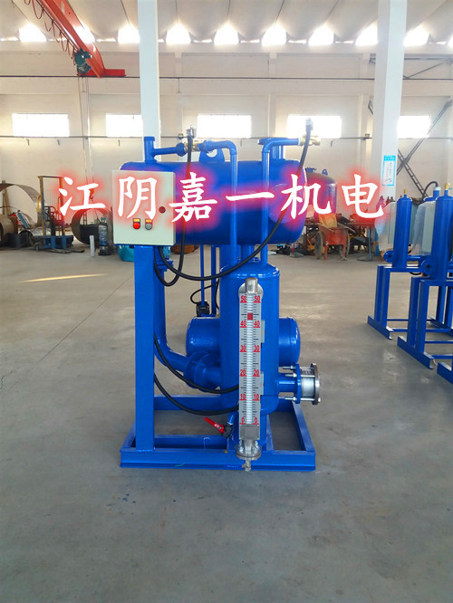 疏水自動加壓器由水箱、加壓室及控制系統組成。水箱用于汽水分離和儲存一部分凝結水,并將凝結水輸送給加壓室。加壓室中裝有側裝液位控制顯示器。當液位達到控制器高點時,進氣閥打開,隨后排氣閥關閉,加壓氣體進入,凝結水通過止回閥受壓排出;當液位達到控制器低點時,進氣閥關閉,隨后排氣閥打開,加壓氣體被隔斷,同時管內余氣排出,凝結水受重力作用,從水箱通過止回閥進入控制管??刂葡到y為全自動控制系統,自動運行,無人看守。