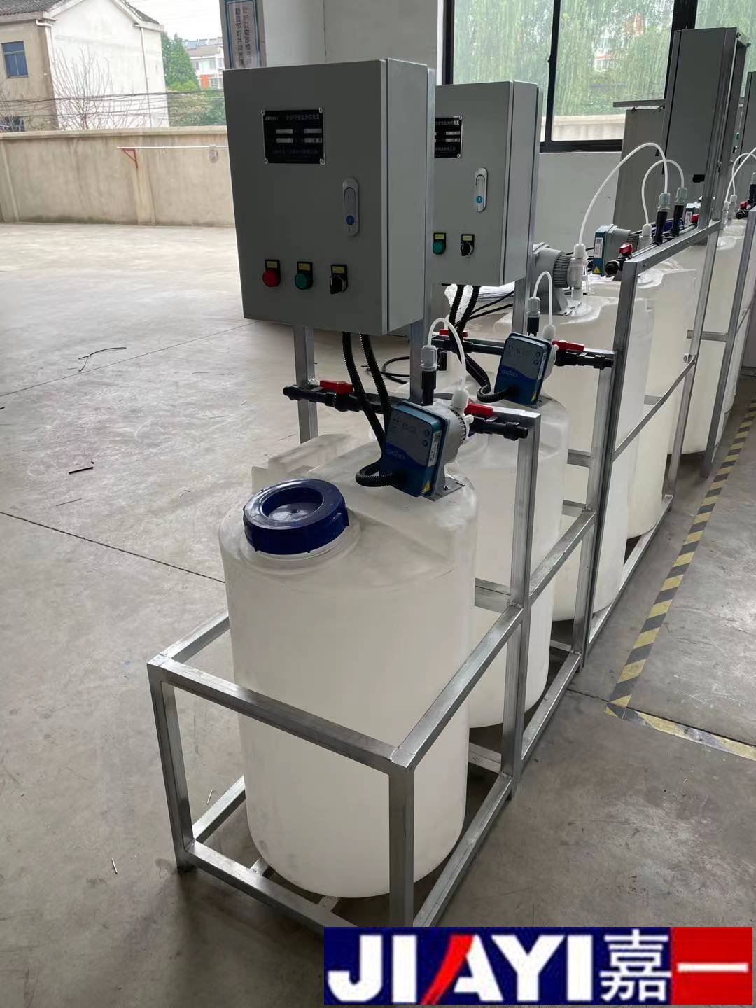 全自動加藥裝置采用時間程序控制,此控制方式無需儀表的支持,首先根據(jù)系統(tǒng)的運轉(zhuǎn)需要設(shè)定自動加藥的周期、加藥量、加藥時間和加藥頻率。在以后的系統(tǒng)運轉(zhuǎn)過程中,到加藥周期,計量泵自動打開加藥,加到規(guī)定的時間計量泵關(guān)閉;到排污周期,計量泵停止加藥,排到規(guī)定的時間后,計量泵繼續(xù)開啟,補充排污損失掉的藥劑,把系統(tǒng)的含藥量維持在正常的水平、加到規(guī)定的時間計量泵關(guān)閉。